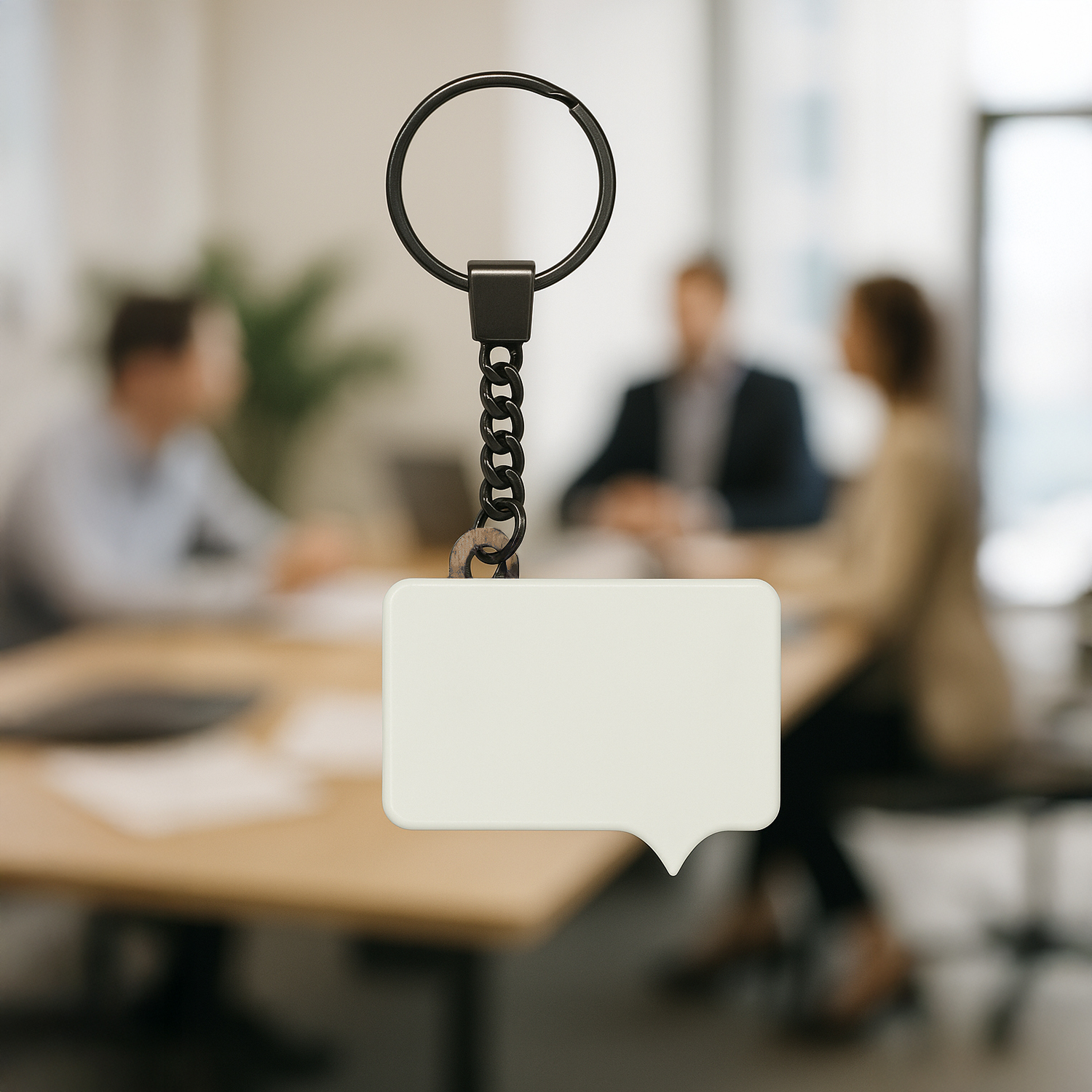 Нанести логотип можно как на лицевой, так и на обратной стороне брелока. Он упакован в индивидуальный пакет с картонным полиграфическим вкладышем.