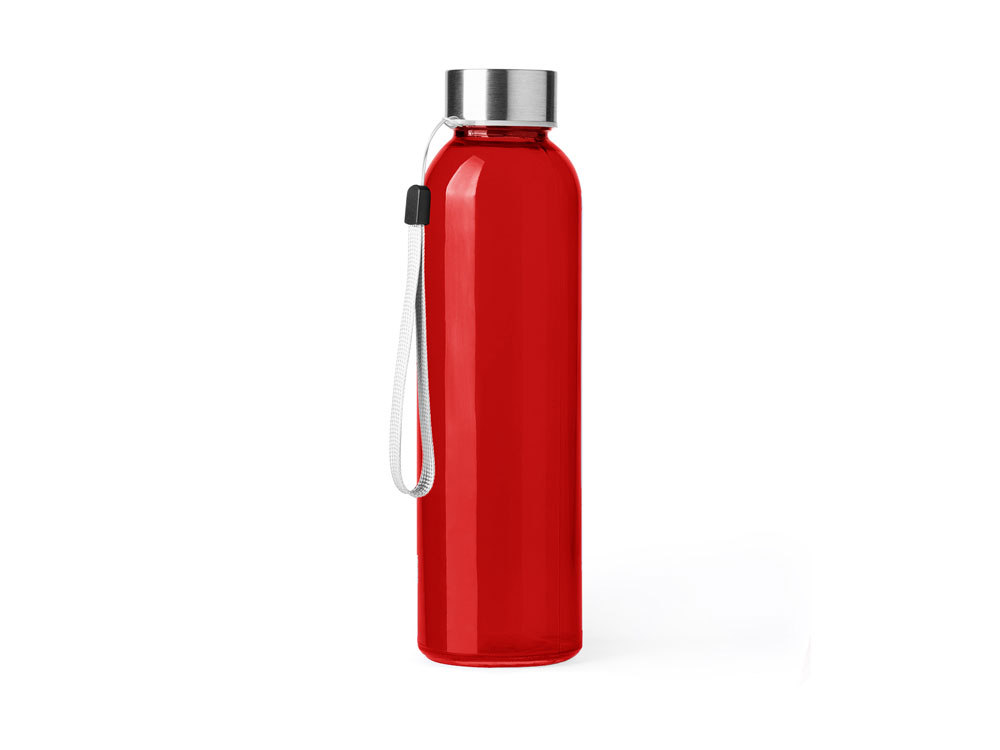 Стеклянная бутылка емкостью 500 мл. Большое разнообразие цветов, с завинчивающейся крышкой из нержавеющей стали и удобной для транспортировки благодаря ремешку серого цвета. -
