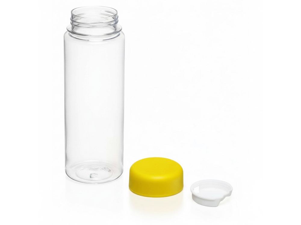 Лаконичный внешний вид позволяет нанести на аксессуар логотип компании. Прозрачный корпус дает возможность контролировать количество содержимого. Благодаря съемному фильтру в воду можно добавлять лимон, мяту и фрукты. Силиконовое кольцо предотвращает протекание, а крышка надежно закрывает бутылку.