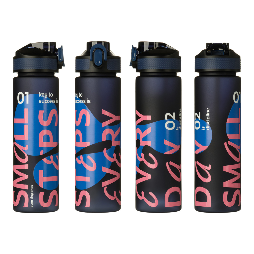 Конструкция полностью герметична - практичная крышка с системой фиксации клапана исключит случайное протекание жидкости. Конструкция крышки позволяет открыть бутылку, не касаясь питьевого горлышка, что гарантирует гигиеничность в использовании. Благодаря полупрозрачному корпусу вам всегда понятно, сколько жидкости осталось в бутылке.