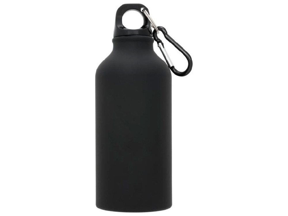 Матовая спортивная бутылка Oregon с карабином и объемом 400 мл. Бутылка с одинарными стенками со съемной крышкой. Модное матовое покрытие. Карабин не предназначен для лазанья. Объем – 400 мл. Алюминий без БФА. -