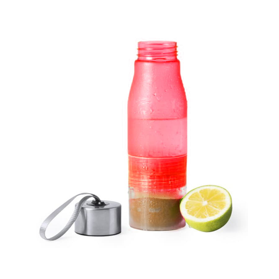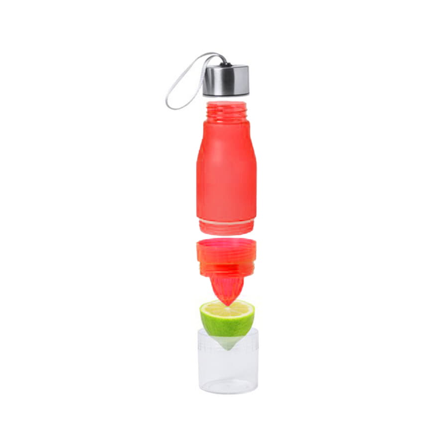 Бутылка выполнена из высококачественного пластика- тритана, без содержания ВРА. Включает отделение с соковыжималкой для цитрусов, чтобы придать аромат воде. С диспенсером, навинчивающейся металлической крышкой и удобной текстильной петлей для переноски. Поставляется в отдельной коробке. Преимущества тритана: -небьющийся - не имеет вкуса запаха - возможно мытье в посудомоечнорй машине Необходимо промыть в теплой проточной воде перед использованием. -