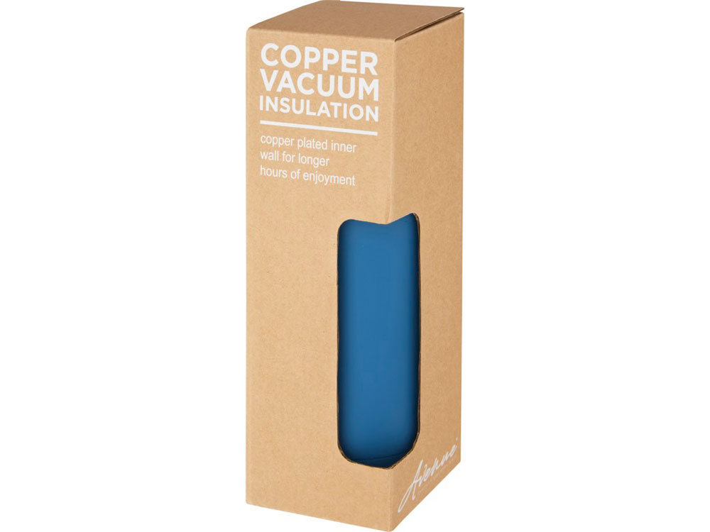 Нержавеющая медная бутылка с вакуумной изоляцией и простым дизайном. Изолированная конструкция из нержавеющей стали 18/8 предотвращает образование конденсата на внешней стороне бутылки, а модная финишная отделка порошковым напылением делает ее чрезвычайно прочной. Не содержит БФА, испытана и одобрена в соответствии с немецким законодательством о безопасности пищевых продуктов (LFGB). Проверена на содержание фталатов и одобрена для использования в соответствии с правилами REACH. Объем 500 мл. Рекомендуется мыть вручную. В коробке из переработанного картона. -