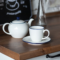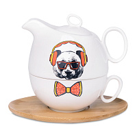 Чайник с кружкой на подставке "Мила" в упаковке, 22х22х12см,500мл и 300мл, фарфор, бамбук