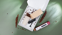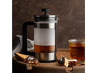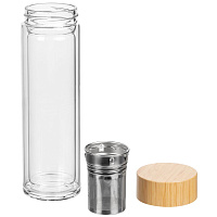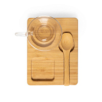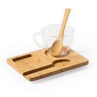Чашка с ложкой на подставке MORKE 180мл,16,4х8х12,3 см, боросиликатное стекло, бамбук