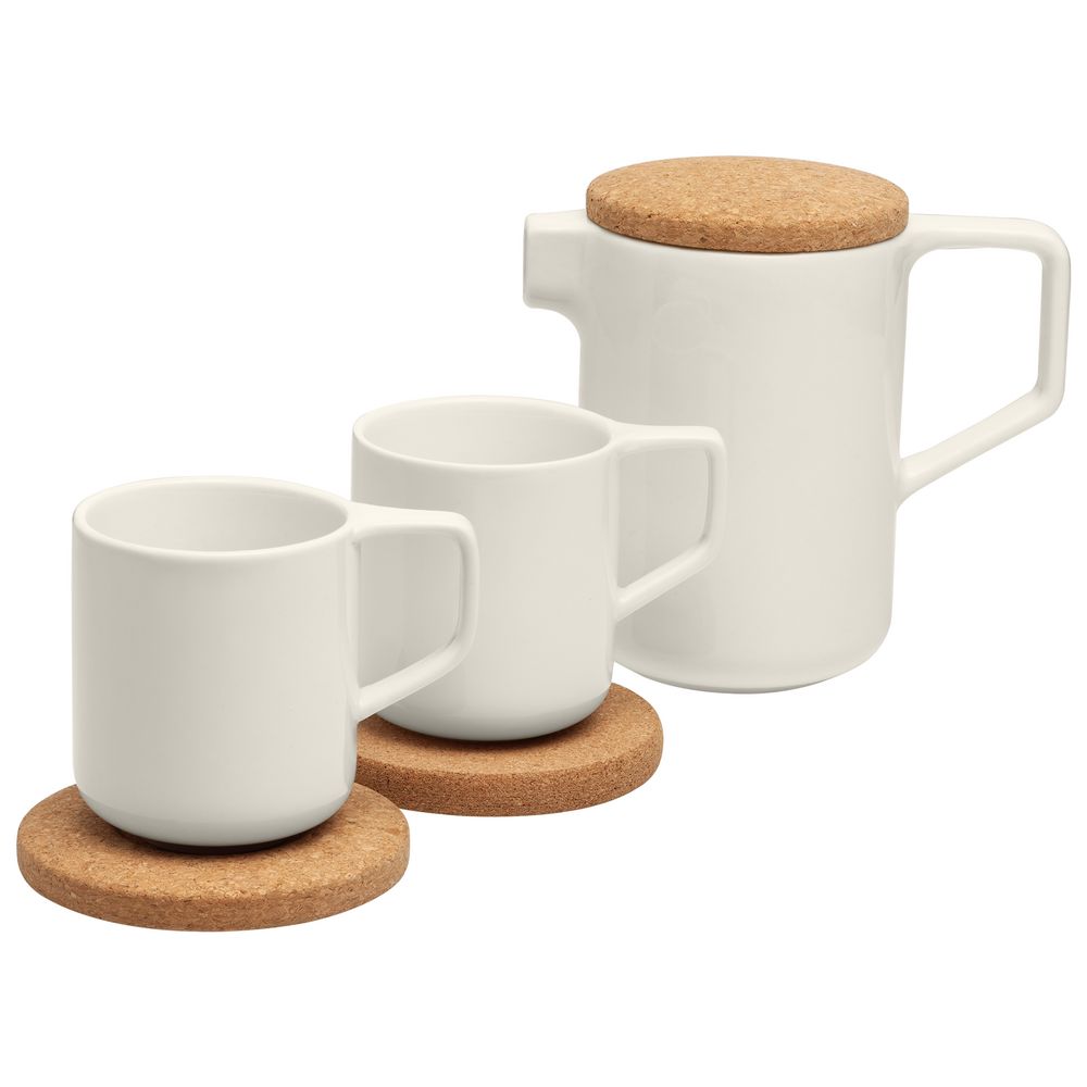 Отвлечься от повседневной суеты за чашечкой горячего чая или ароматного кофе особенно приятно с коллекцией Riposo. Продуманная функциональность и яркий контраст текстурной пробки и гладкого молочно-белого фарфора — для тех, кто следит за последними тенденциями и всегда выбирает комфорт.В набор входит:- чайник Riposo, 600 мл