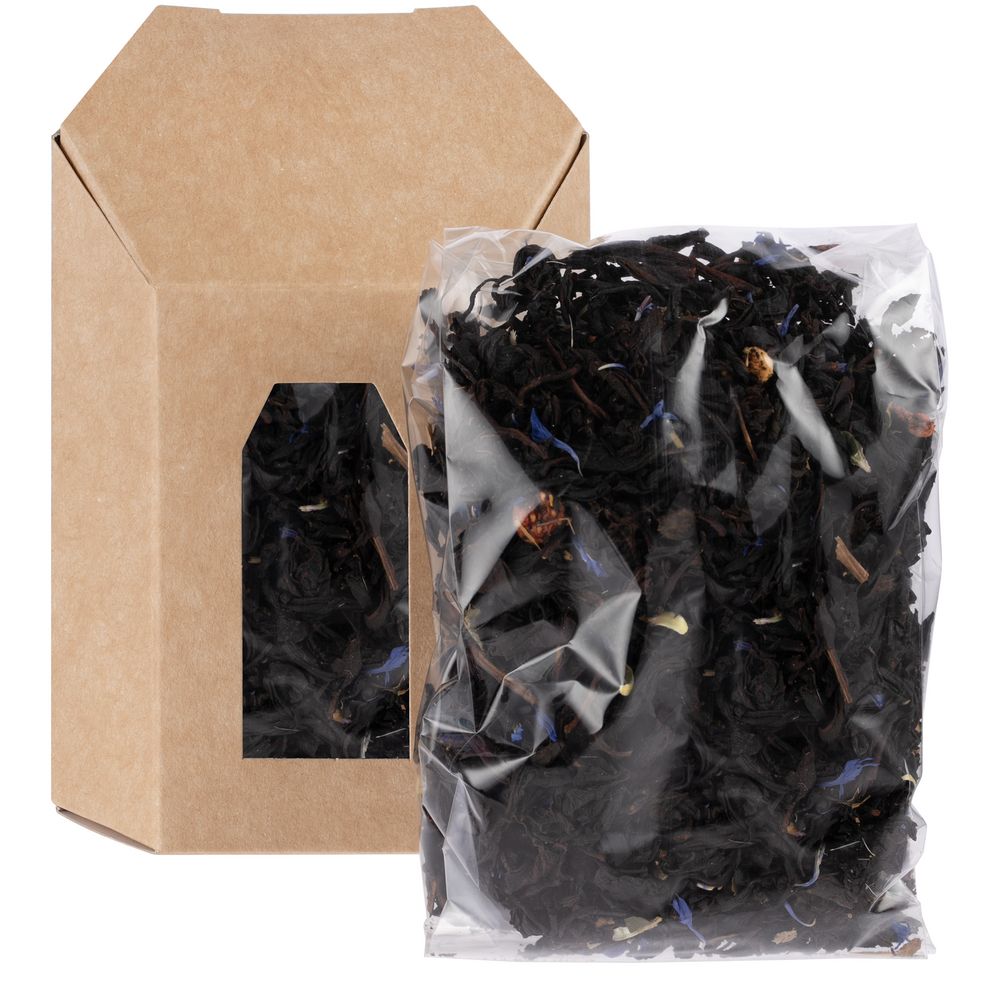 Праздничный купаж на основе черного чая, украшенный цветочными лепестками и кусочками клубники.Состав: черный индийский чай, сушеная клубника, клубничный лист, цветки василька, ароматизатор «клубника».