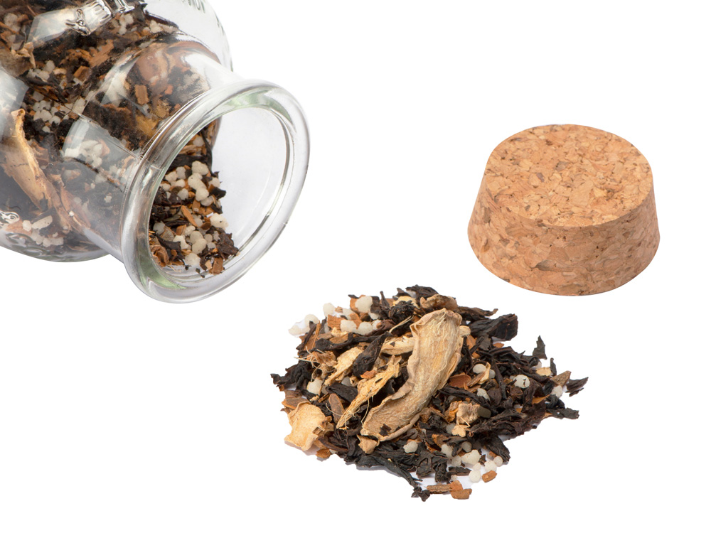 Состав: чай чёрный с имбирём и соком имбиря (чай чёрный байховый крупнолистовой, кусочки имбиря, сок имбиря), медовые гранулы, корица дроблёная.