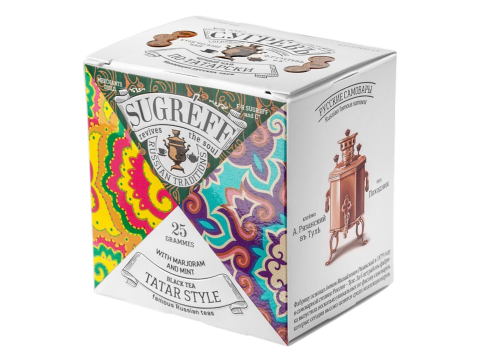 Чай ПО-ТАТАРСКИ сделан на основе купажа отборного цейлонского чая Pekoe c добавлением натуральных популярных трав Татарстана. Брусничный лист придаёт напитку лёгкую терпкость, а мята с душицей добавляют аромат и свежесть. При желании в этот чай можно добавить молоко, чтобы приблизиться к традициям татарского чаепития.