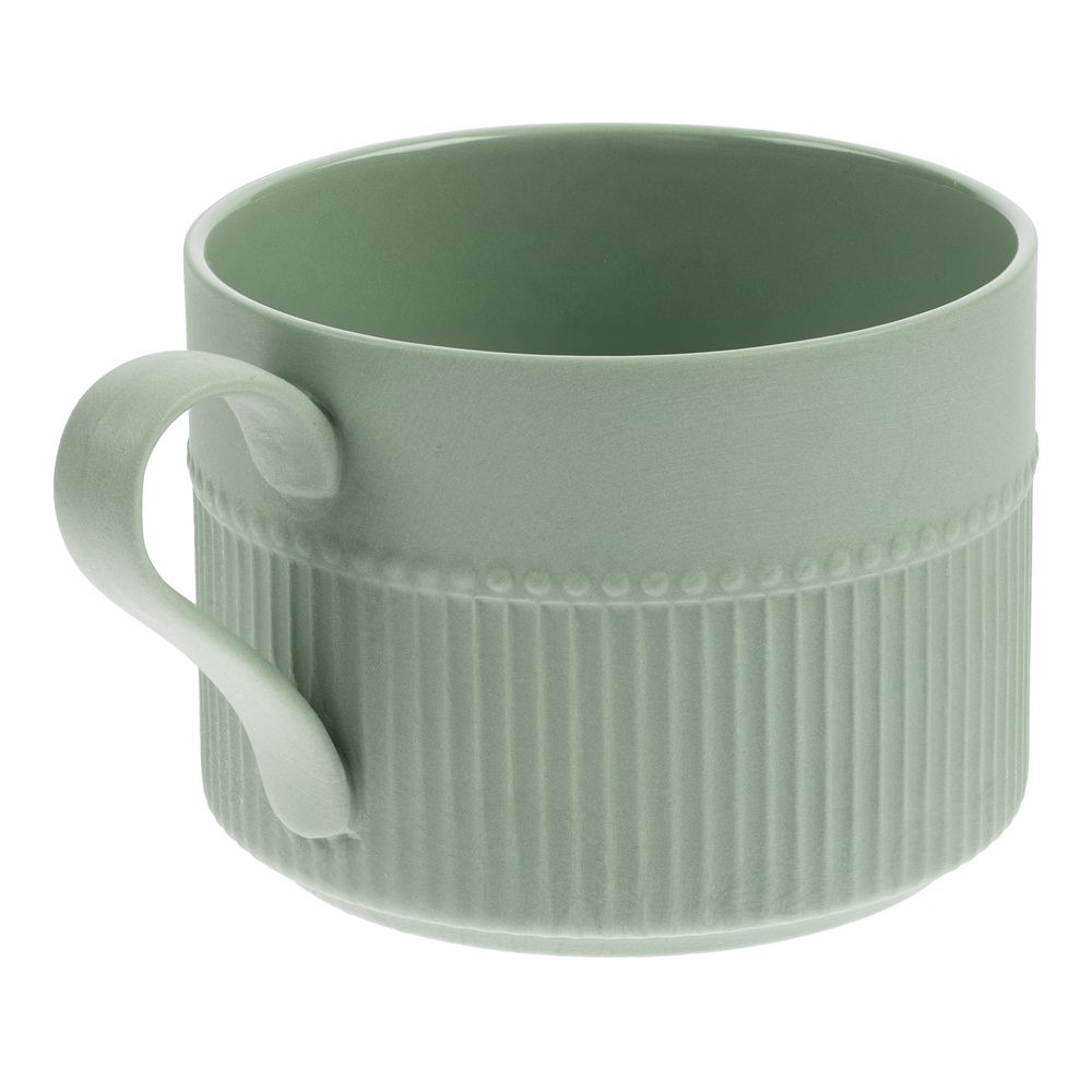 Орнамент корпуса кружки и высокого бортика блюдца напоминает изящные каннелюры — вертикальные желобки на колонне. Это добавляет всему изделию изысканности и стилистической завершенности, благородства и античной строгости.