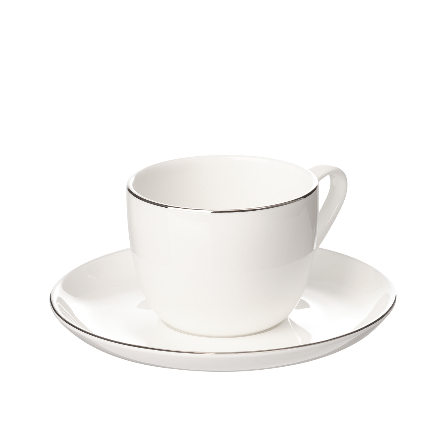 Предметы из коллекций «Verona» и «Amelie» имеют гладкую форму и плавные изгибы. Благодаря деликатному ободку платинового цвета посуду можно использовать как на праздничных чаепитиях, так и на повседневной основе.