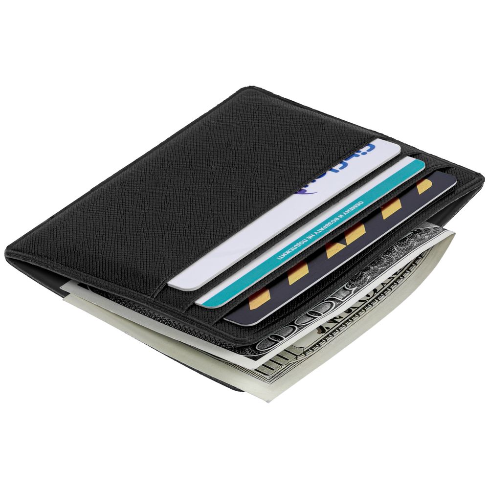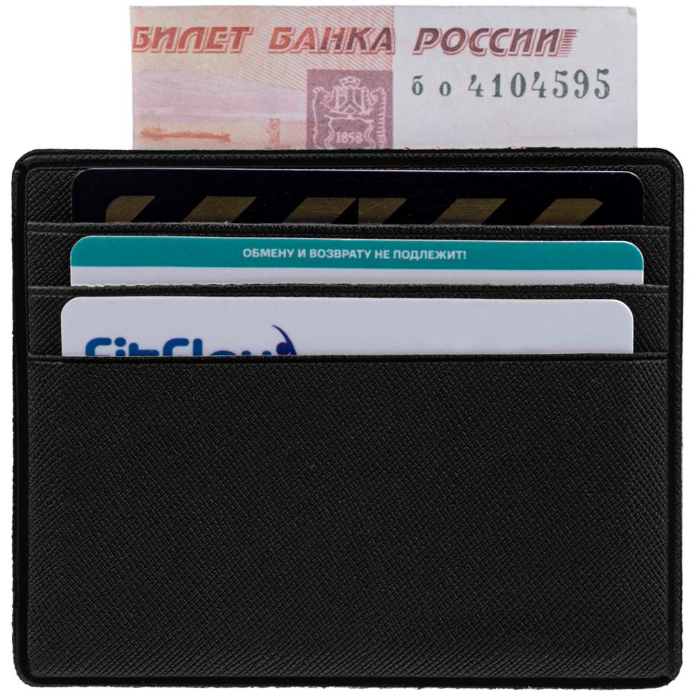 Чехол для карточек из искусственного материала, имитирующего сафьяновую кожу, с шестью отделениями для кредитных карт и одним — для сложенных купюр. -