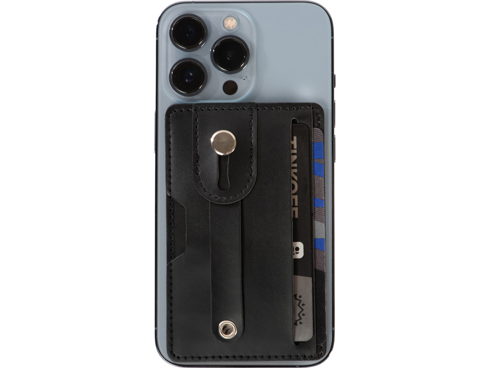 Удобный бумажник для телефона с защитой RFID с ремешком. Этот бумажник с защитой от сканирования RFID вмещает 2 банковские карты или удостоверения личности и защищает их от несанкционированного сканирования и мошенничества. Клейкая лента на обратной стороне бумажника позволяет крепить его к смартфону с плоской задней поверхностью. К бумажнику прикреплен ремешок, позволяющий удобно держать телефон в руке. Кожа ПУ. -