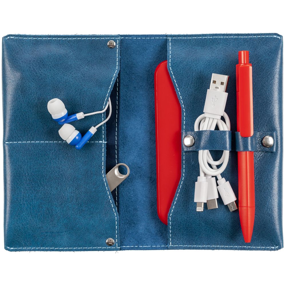 В органайзере есть два крепления на кнопке и четыре кармана разных размеров для проводов, наушников и зарядных устройств. -