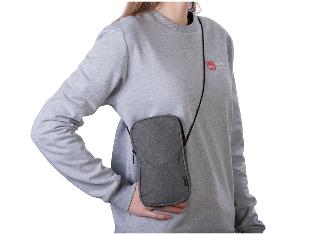 Мобильный чехол из полиэстера RPET. Основное отделение с застежкой-молнией. Внешний карман. В комплект входит шнурок для переноски. Длина шнурка 122 см. -