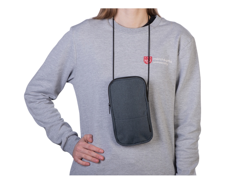 Мобильный чехол из полиэстера RPET. Основное отделение с застежкой-молнией. Внешний карман. В комплект входит шнурок для переноски. Длина шнурка 122 см. -