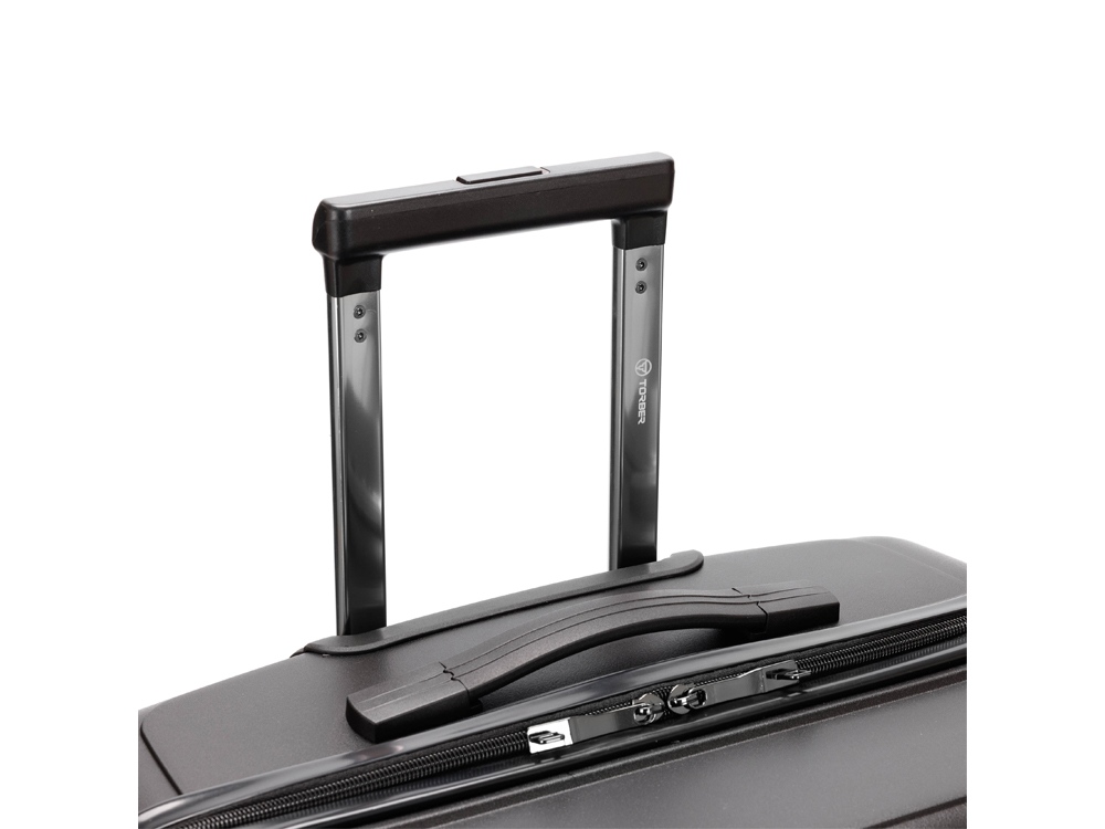 Легкая регулируемая телескопическая ручка и система из 8 колес, вращающихся на 360 градусов, обеспечивает мягкий ход и свободное движение во всех направлениях.