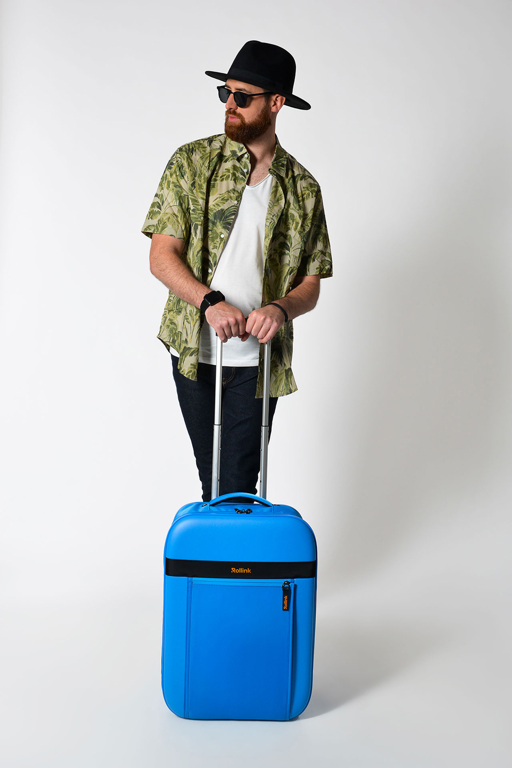Складной легкий чемодан Rollink Aura ярко-синего цвета. Размер 55х40х20 см. В сложенном виде толщина составляет 8,5 см, с колёсами 10,5 см. Объем 40 л. Вес 2,5 кг. Жесткие стенки сделаны из поликарбоната повышенной ударопрочности. Бока мягкие, из плотного нейлона с высокой водоотталкивающей способностью и высококачественной молнией в цвет чемодана. Чемодан уверенно стоит вертикально даже в сложенном состоянии. Внутри три откидывающихся жестких клапана на дне и боках чемодана, крепятся липучками и сохраняют форму чемодана в собранном виде. Внутри чемодана эластичная Х-образная стяжка для фиксации предметов и большой сетчатый карман на молнии. На передней стенке чемодана расположен большой easy access карман 24х34 см на водозащищенной молнии с несколькими отделениями для ноутбука, документов и мелочей. Удлиненная надежная выдвижная телескопическая ручка из алюминия с несколькими уровнями фиксации высоты ручки (от пола 86/97/107 см) для людей разного роста и удобная мягкая ручка сверху чемодана, чтобы было удобно нести его в руках. 2 колеса со специальным покрытием и подшипниками для более плавного и бесшумного передвижения. Вшитая эластичная стяжка с магнитной пряжкой фиксирует чемодан в сложенном состоянии. Упакован в индивидуальную белую картонную коробку 58х42х11 см с ручкой.
