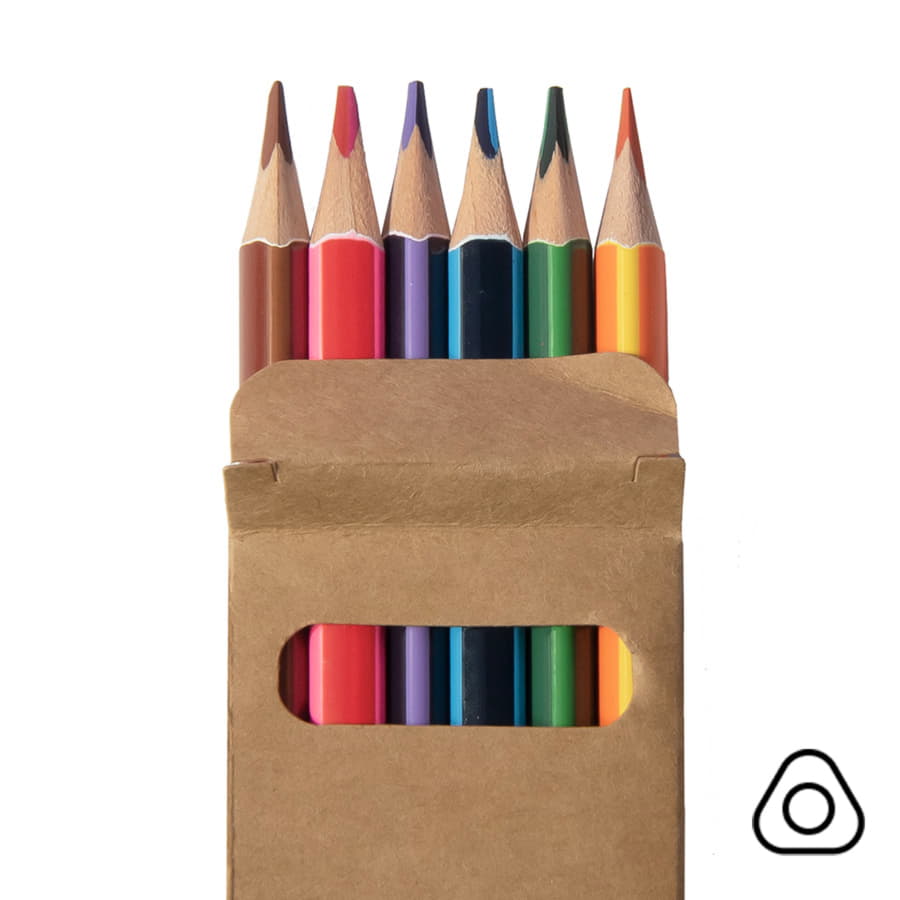 Набор 6 цветных карандашей. Упаковка крафт с вырубкой. Корпус из высококачественной древесины. Двойная проклейка грифеля. Грифель категории А, 3,0 мм. Многослойная прокраска трехгранного корпуса. Уникальность данного набора в том, что карандашей в нем 6, а цветов 12. Карандаш с двухцветным грифелем позволяет отобразить эффект плавного перехода цвета (градиент). • Яркие цвета • Трехгранный корпус из высококачественной древесины • Прочный грифель 3.0 мм • Легко затачиваются -