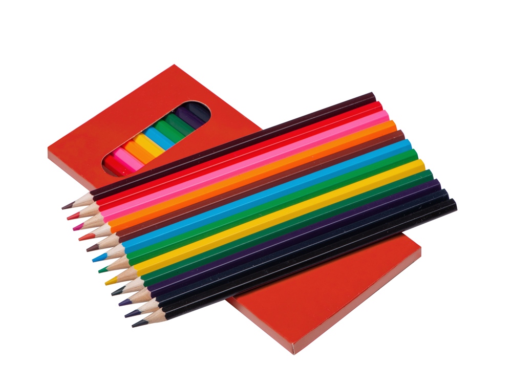 Набор из 12 шестигранных цветных карандашей твердостью ТМ. Нанесение можно сделать на всей поверхности упаковки -