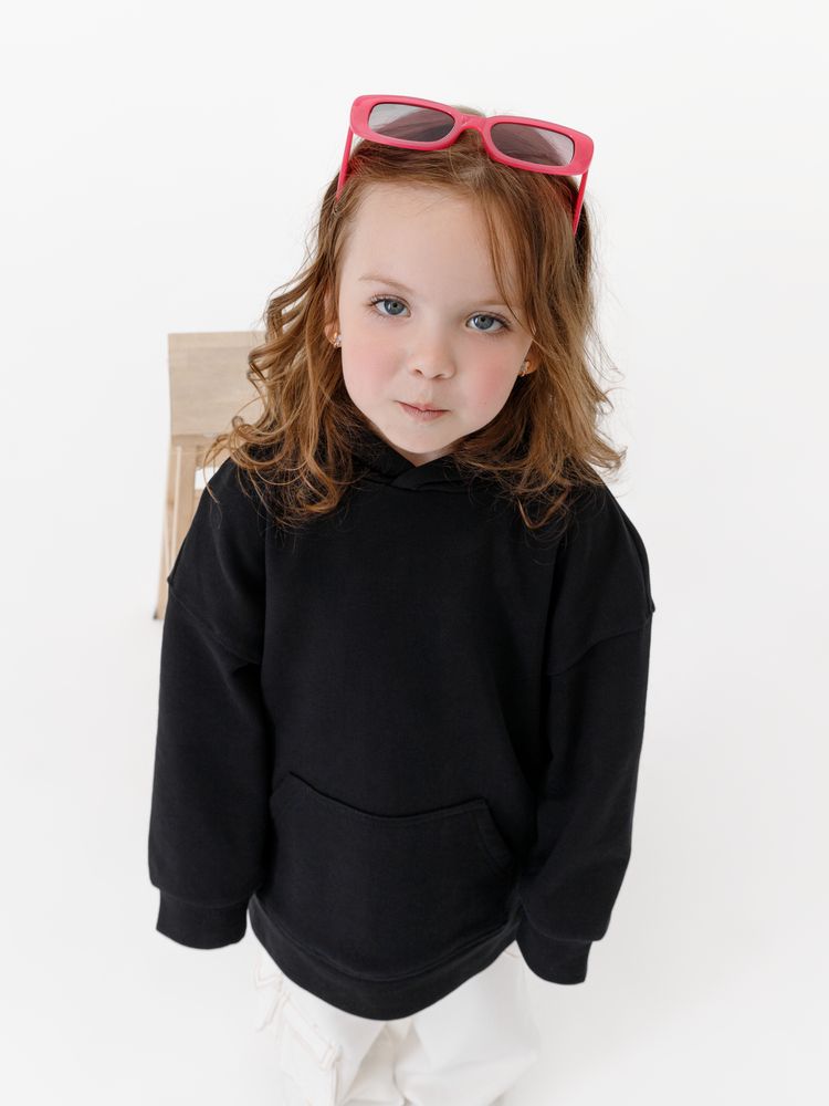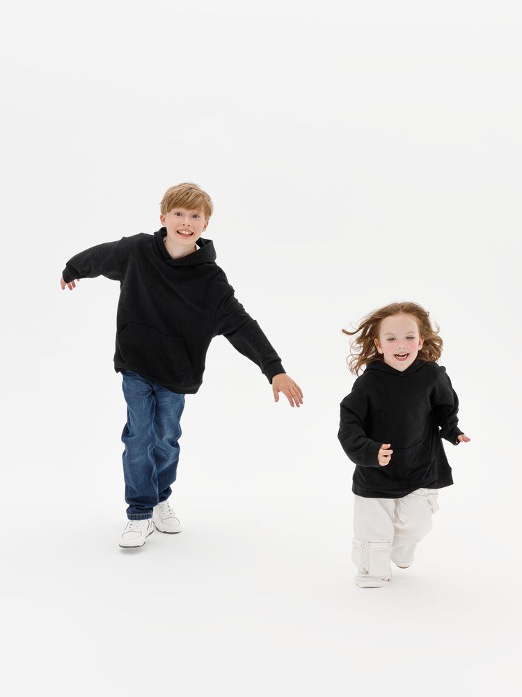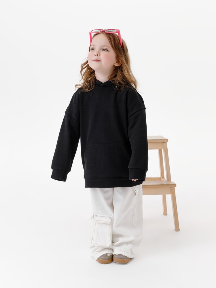 Детское худи оверсайз со спущенным плечом и карманом-кенгуру.- Прекрасно подходит для всевозможных видов нанесения благодаря использованию особо гладкой гребенной пряжи