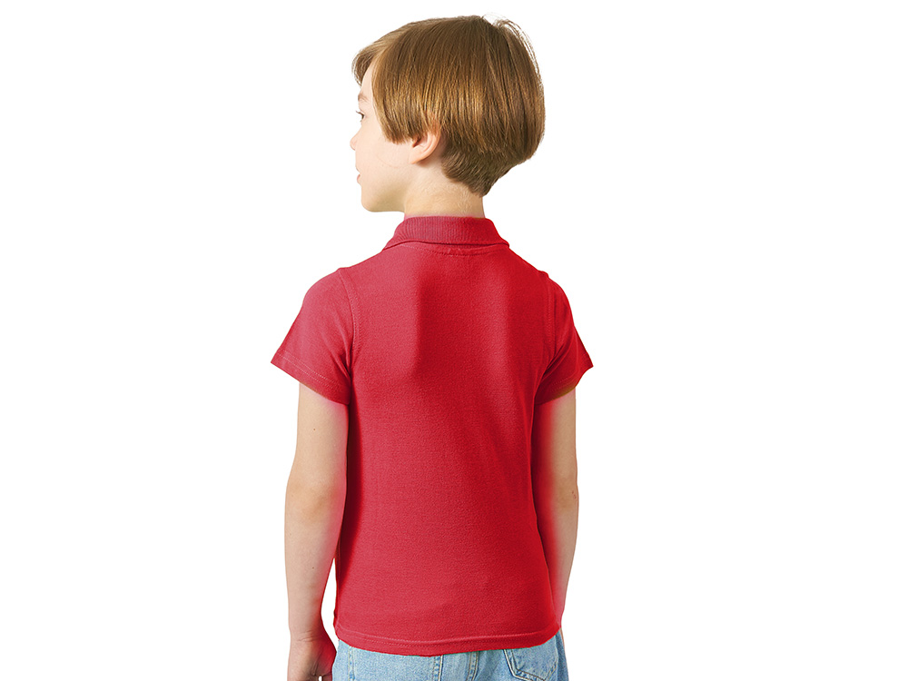 Детская рубашка поло First. Воротник 1х1. Обшивка внутри воротника. Мужская и детская модели с 2 пуговицами, женская - с 4 пуговицами. Пуговицы с гравировкой в тон. Пике, 100% хлопок. 160 г/м². -