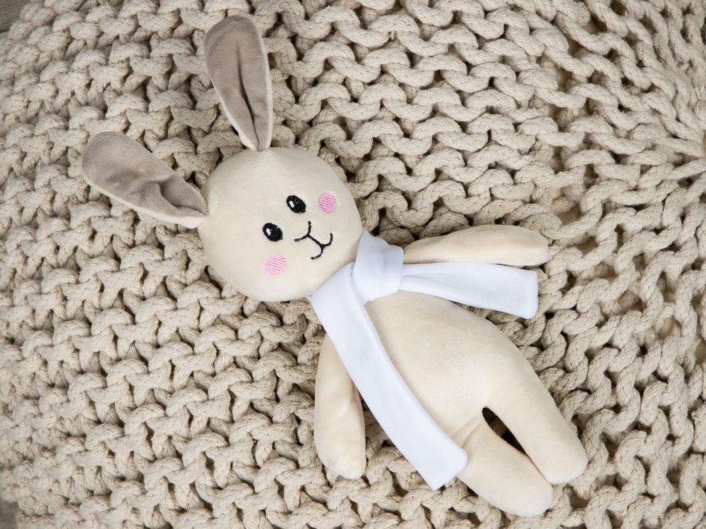 Зайчик-стесняшка из мягкого плюша с трогательно торчащими ушами влюбляет с первого взгляда и визуально, и тактильно.