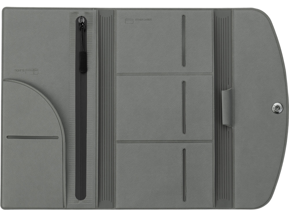 - Удобные отделения для паспорта, билетов, карт и страхового полиса.