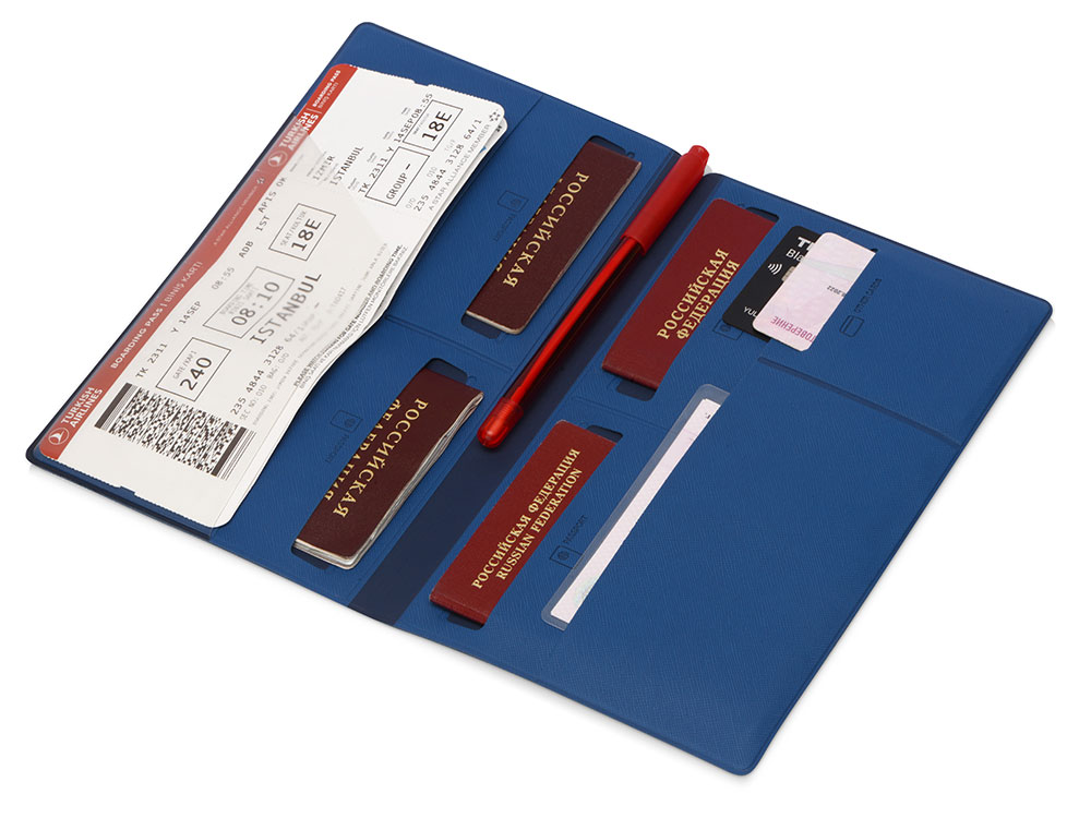 Внутри имеется восемь карманов, которые позволяют вместить документы для семьи из четырех человек. Документы аккуратно разложены и не утратят свою форму. Благодаря своим преимуществам органайзер для путешествий становится не только отменным подарком, но и эффективным рекламным средством. -