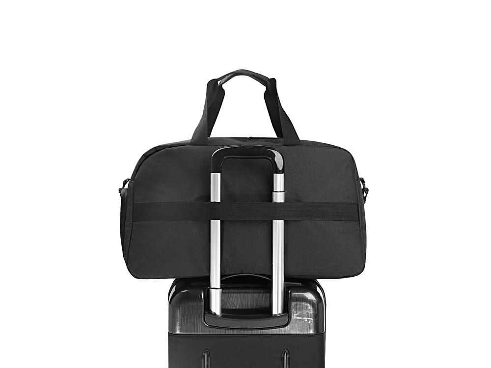 • Ремень на задней стороне сумки для надежного крепления аксессуаре на телескопической ручке чемодана на колесиках.