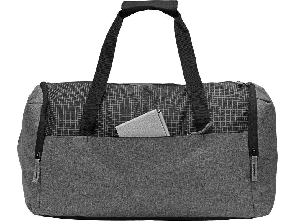 Благодаря вставке со светоотражающими элементами сумка будет заметна и обеспечит дополнительную защиту даже в темное время суток. Легка и очень вместительная, с наружным и боковым карманами на молнии. Отделение для хранения обуви с вентиляционным клапаном. Ручки фиксируются вместе застежкой -липучкой. -