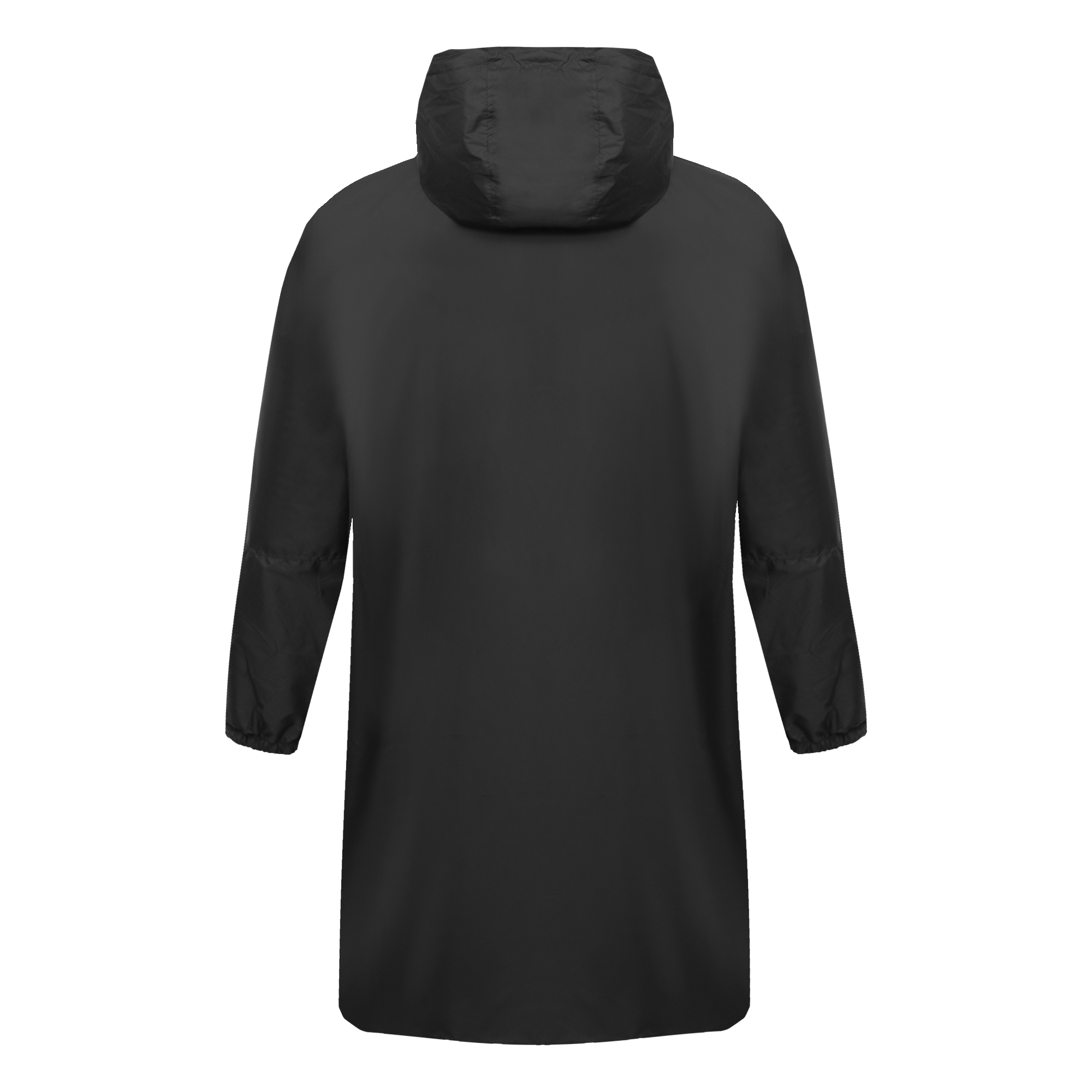 Цельнокроеный дождевик прямого силуэта со спущенным плечом, застежкой на молнию и глубоким прорезным карманом. Для дополнительной защиты от ветра и дождя капюшон дополнен кулисой с резинкой на фиксаторе, а манжет рукава укреплен эластичной резинкой.