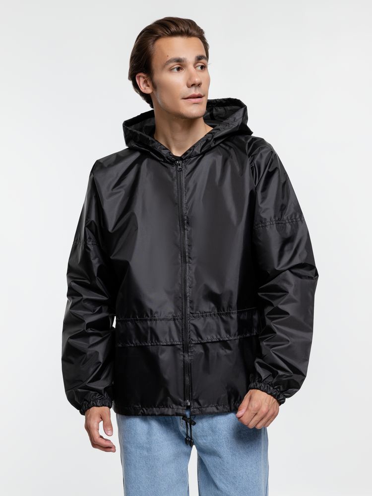 Укороченный дождевик свободного кроя из ткани таффета с влагозащитным покрытием. Складывается в мешочек — удобно брать с собой.- Два накладных кармана надежно закрыты клапанами и защищены от дождя