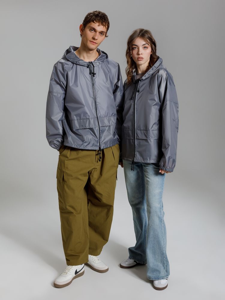 Укороченный дождевик свободного кроя из ткани таффета с влагозащитным покрытием. Складывается в мешочек — удобно брать с собой.- Два накладных кармана надежно закрыты клапанами и защищены от дождя