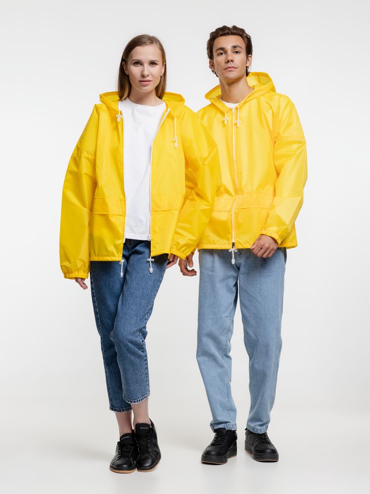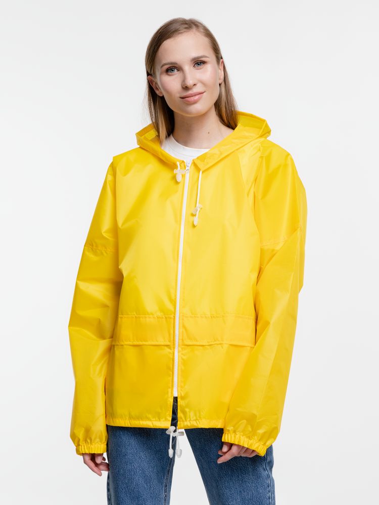 Укороченный дождевик свободного кроя из ткани таффета с влагозащитным покрытием. Складывается в мешочек — удобно брать с собой.- Два накладных кармана надежно закрыты клапанами и защищены от дождя