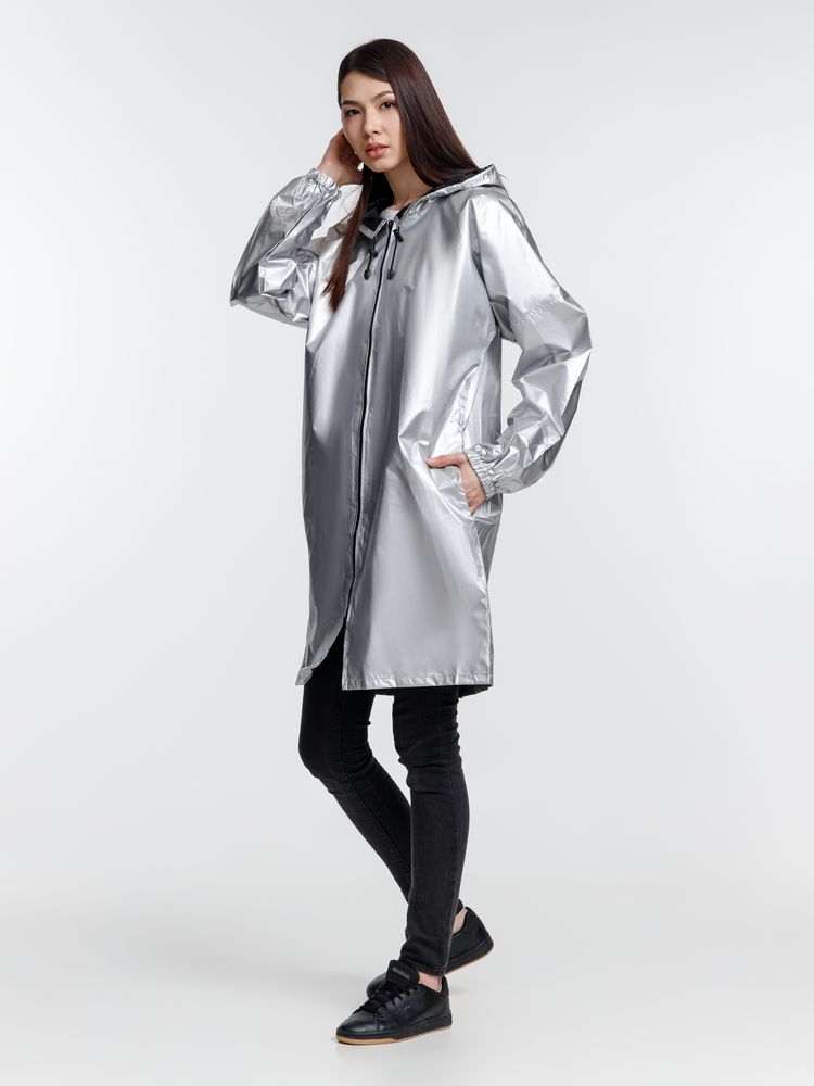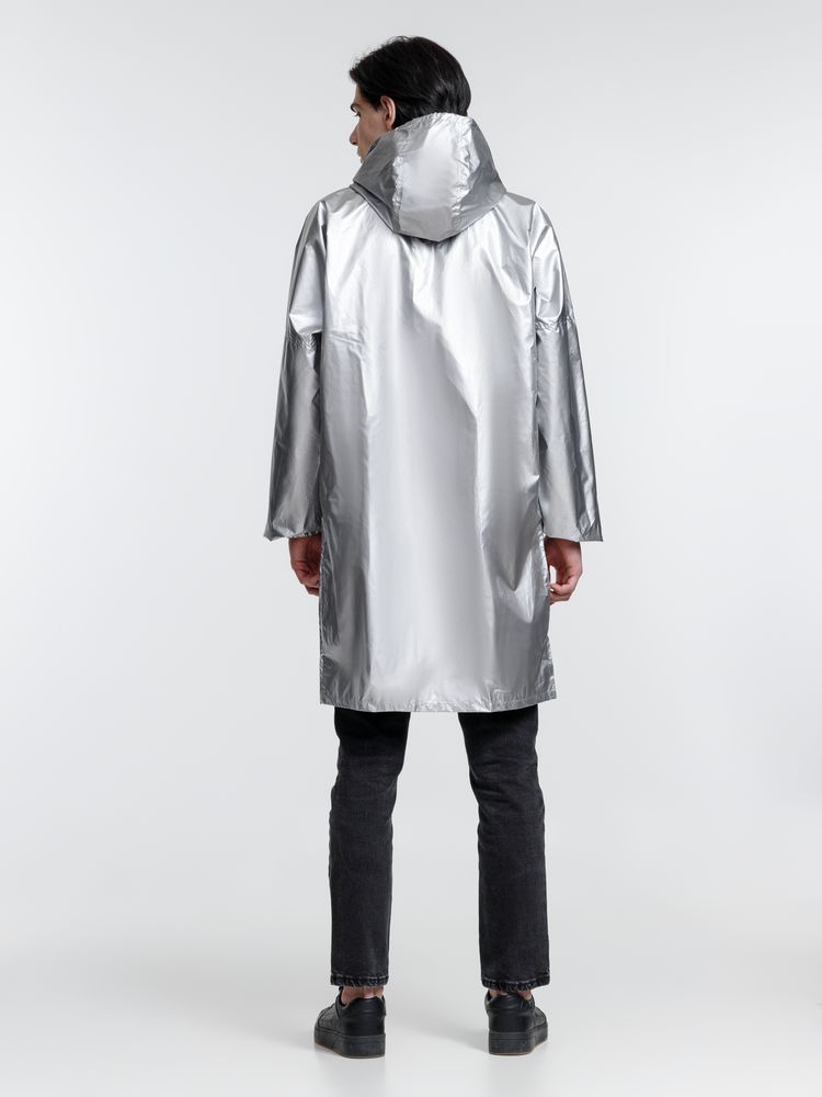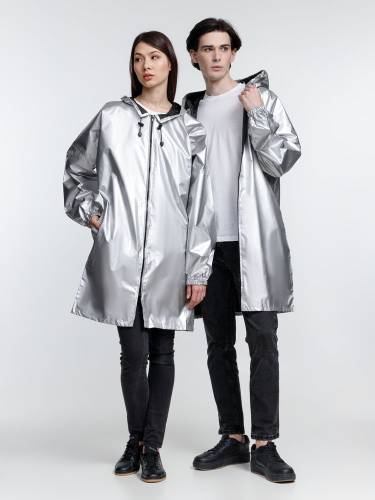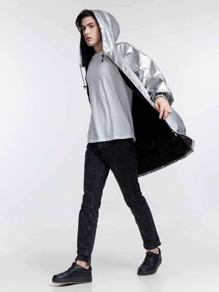 Плащ-дождевик из ткани таффета на молнии с капюшоном. Складывается в мешочек — удобно брать с собой.- Удлиненная модель унисекс
