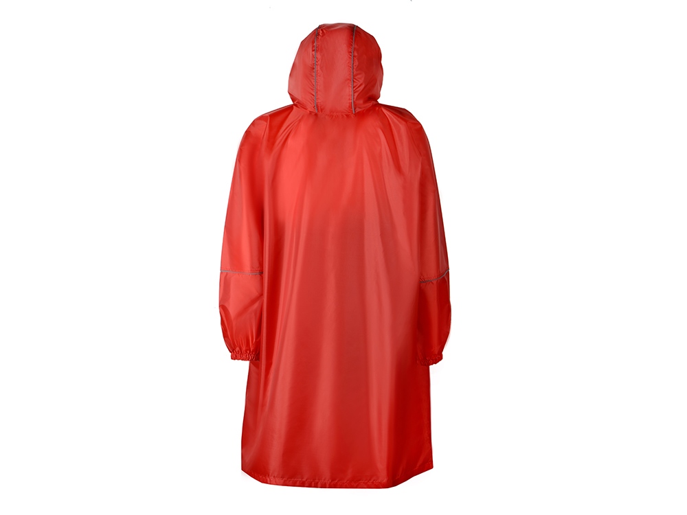 Дождевик - пончо прямого силуэта. Нагрудный карман плаща закрывается на молнию, которая дополнительно защищена клапаном, а еще в него можно полностью убрать дождевик. На дне кармана — ручка-петелька, которая в сложенном виде может использоваться для подвешивания.
