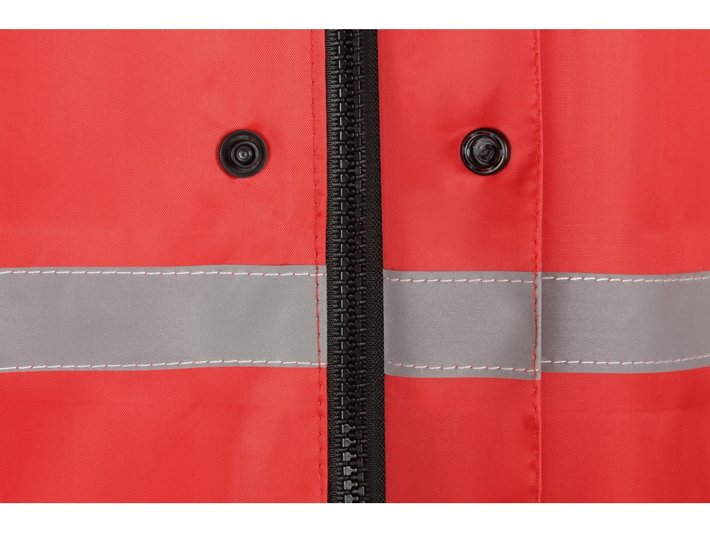 Светоотражающая тесьма на груди и спине делает человека в плаще заметным даже в темное время суток. Вместительные накладные карманы защищены сверху клапаном.