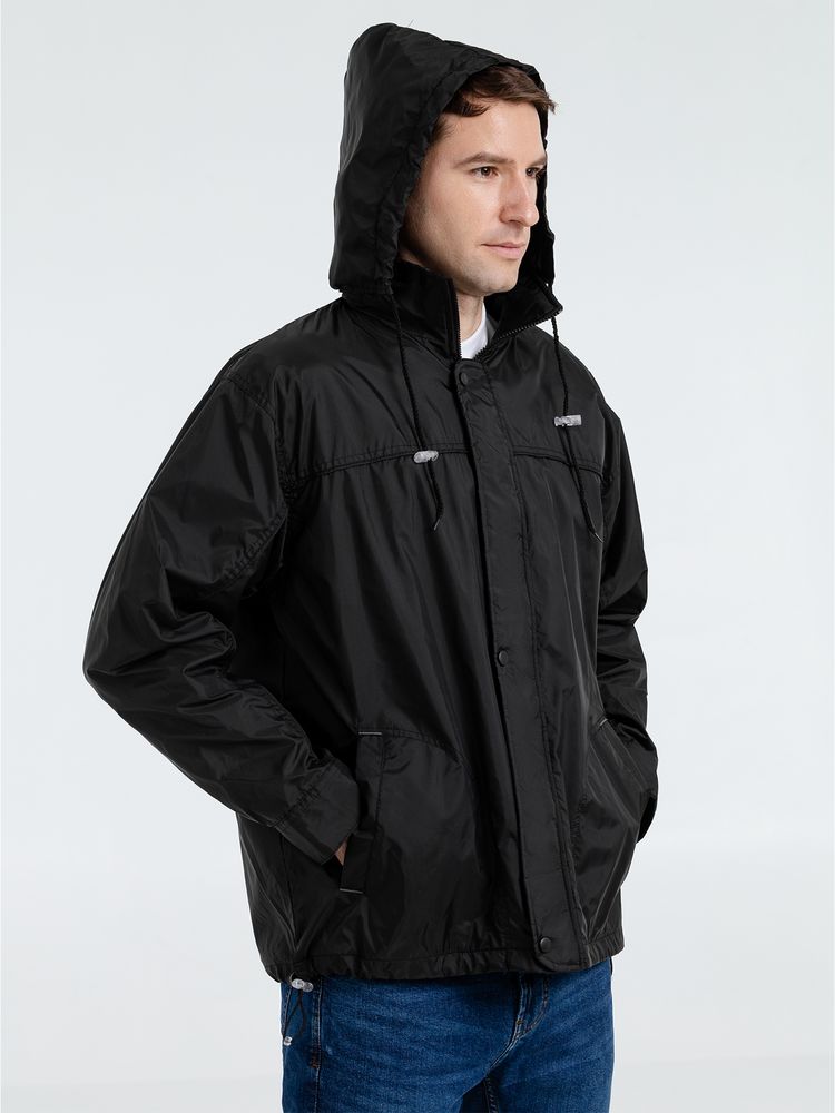 - Капюшон имеет утягивающий шнур и складывается в воротник-стойку