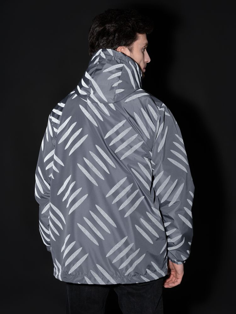 У ветровки с таким паттерном две большие целевые аудитории. Одна — компании, работающие в тяжелой промышленности, другая — все остальные. Согласитесь, довольно мало тех, кто не считает свою работу тяжелой!Ветровка с капюшоном из ткани с водоотталкивающей пропиткой и светоотражающим рисунком.- Капюшон с утяжкой