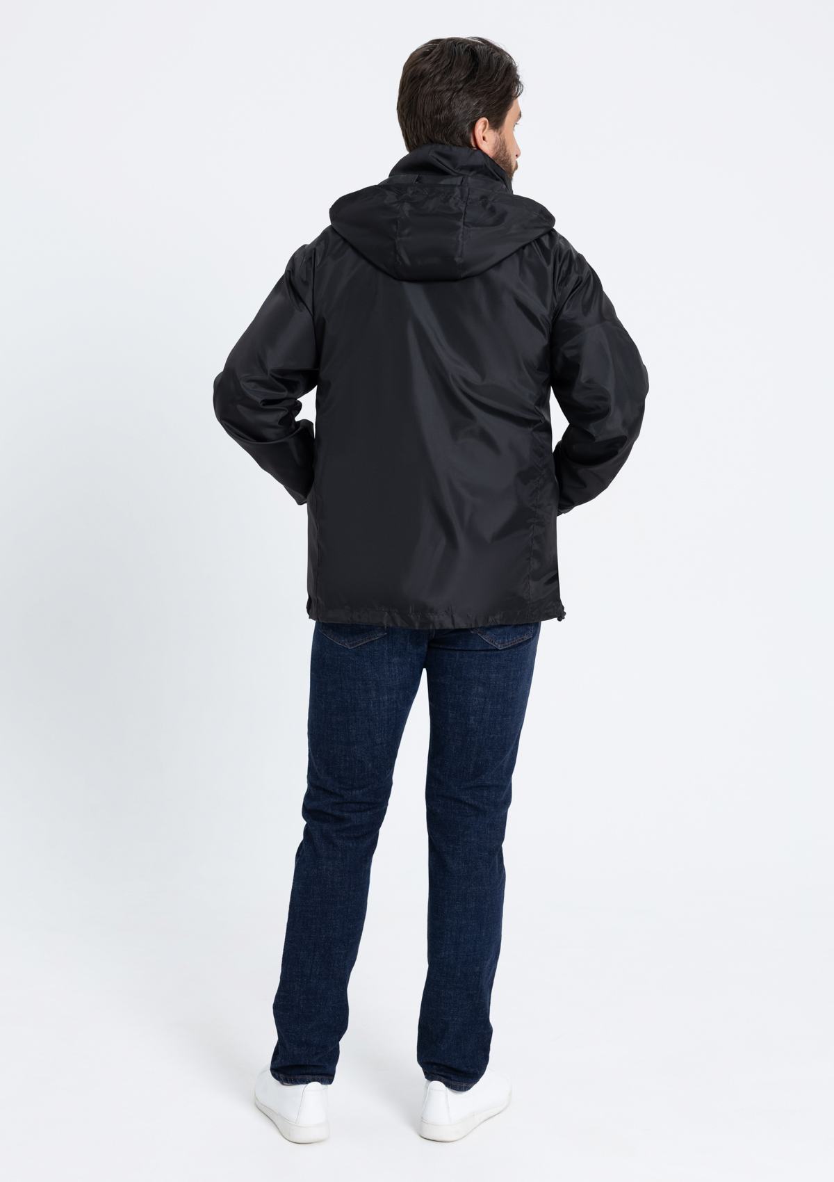 Ветровка прямого кроя с потайным капюшоном, воротником-стойкой, втачным рукавом, двумя внешними карманами и одним потайным, фиксирующимся на ленту велкро. Легкая и эргономичная модель дополнена флисовым подкладом, для поддержания комфортной температуры внутри изделия.