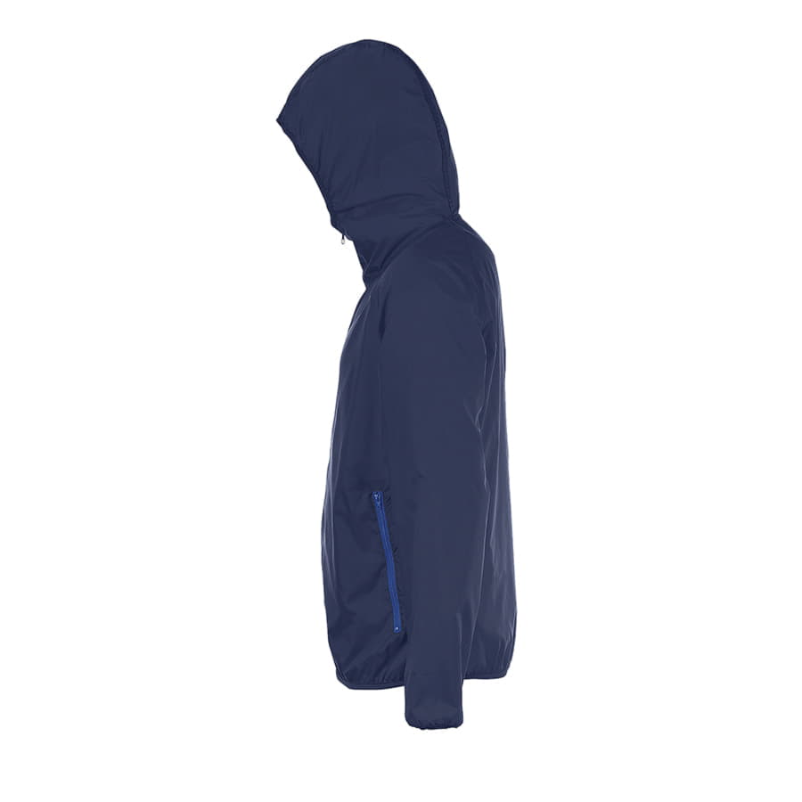 Легкая и компактная ветровка унисекс SHORE из водоотталкивающего и ветрозащитного материала. Два боковых кармана на молнии. Рукава реглан. Манжеты, капюшон и низ ветровки на эластичной тесьме. Молнии ветровки контрастного цвета. Складывается ветровка в свой карман на молнии. Цвет близкий к PANTONE 296C -