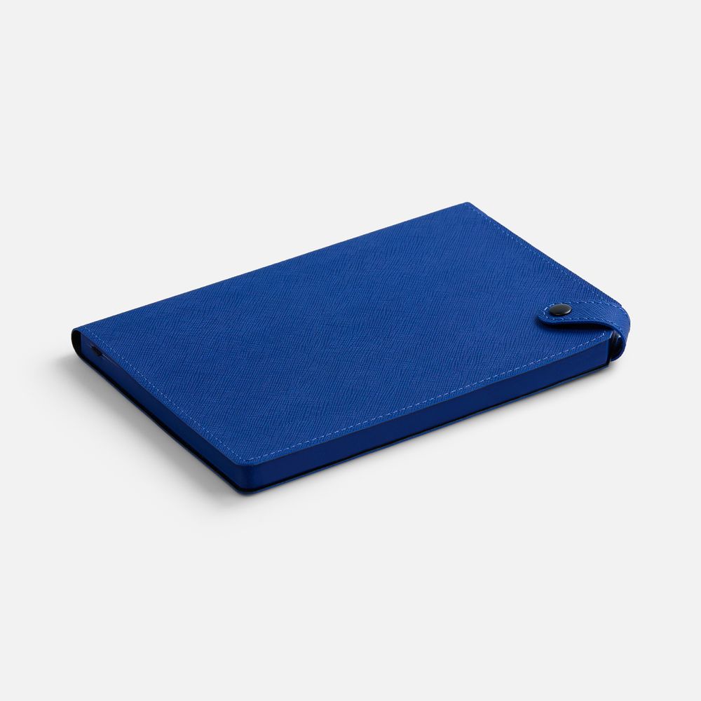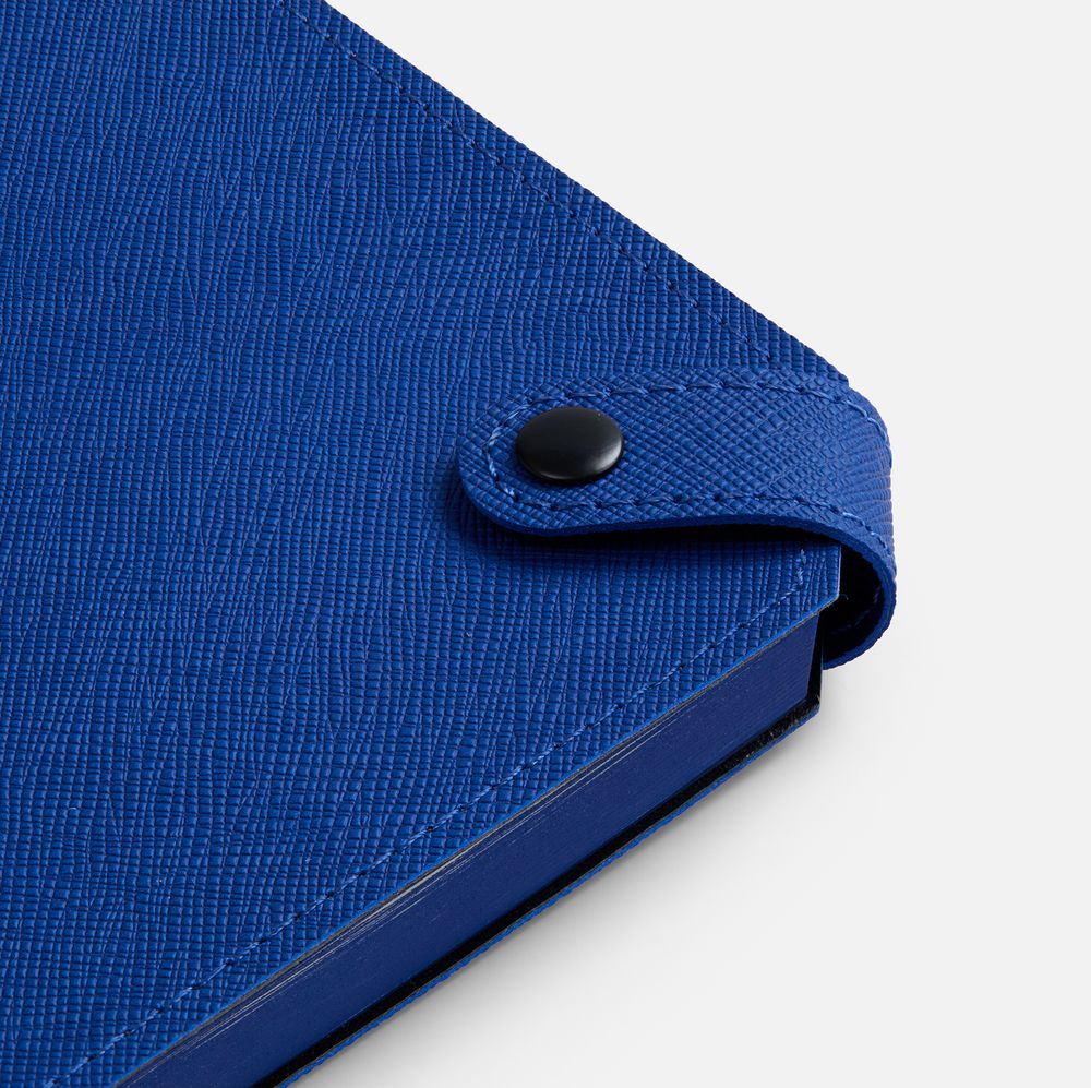 Ежедневник с гибкой обложкой, выполнен из материала Espresso, дополнен ляссе черного цвета и хлястиком на кнопке.