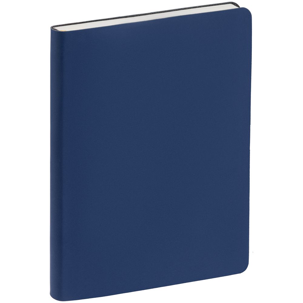 Ежедневник с гибкой обложкой, выполнен из материала Soft Touch, синий НН.Блок 207, датирован на 2026 год, с информационным блоком: