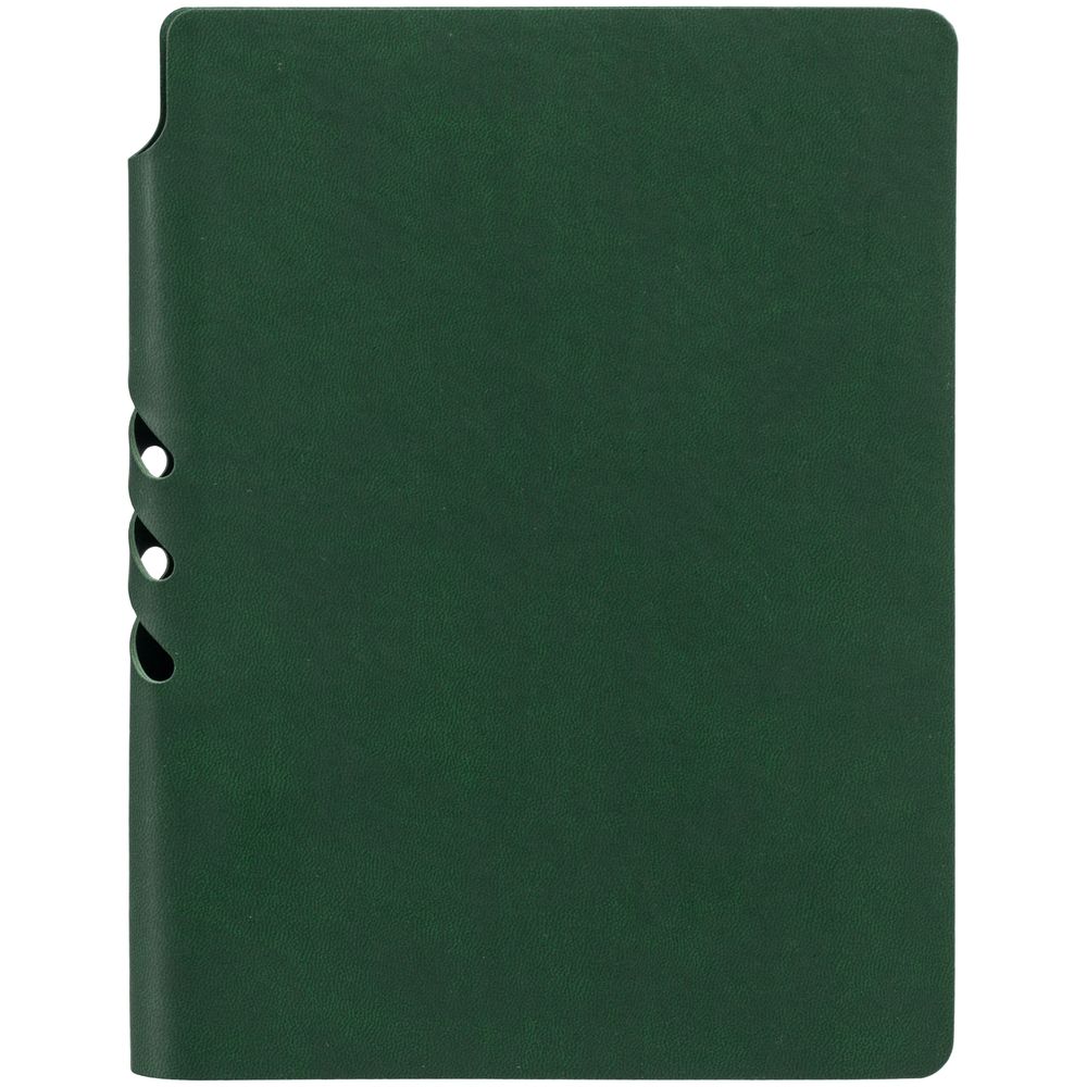Гибкая обложка ежедневника выполнена из материала Latte, зеленый FF. Внутри корешка — специальное место для крепления ручки размером до 15х0,9 см.