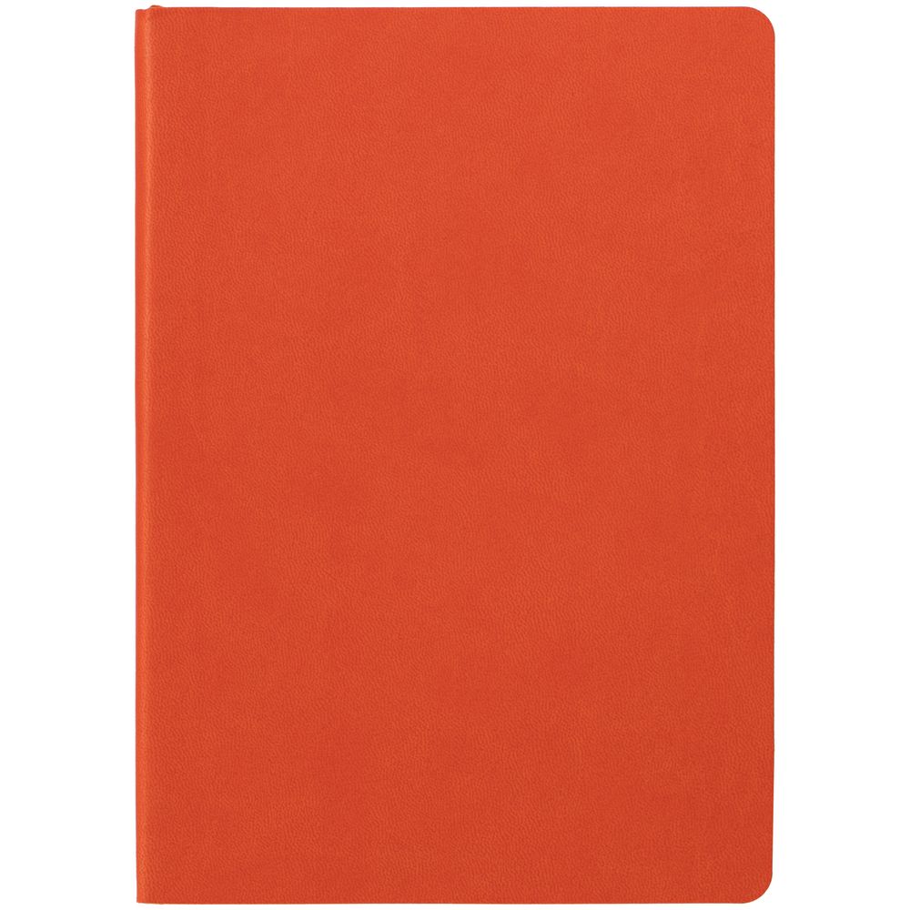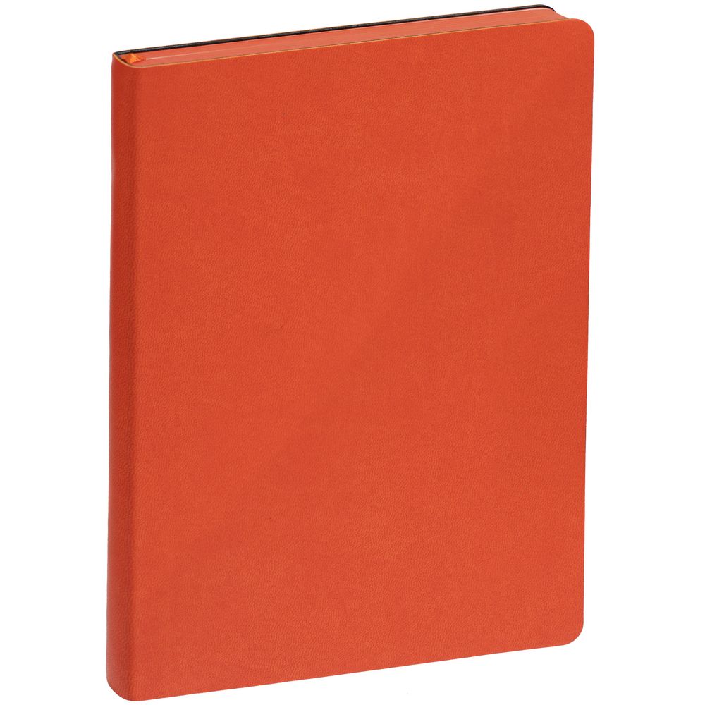 Ежедневник с гибкой обложкой, выполнен из материала Latte, оранжевый, дополнен ляссе в цвет обложки.