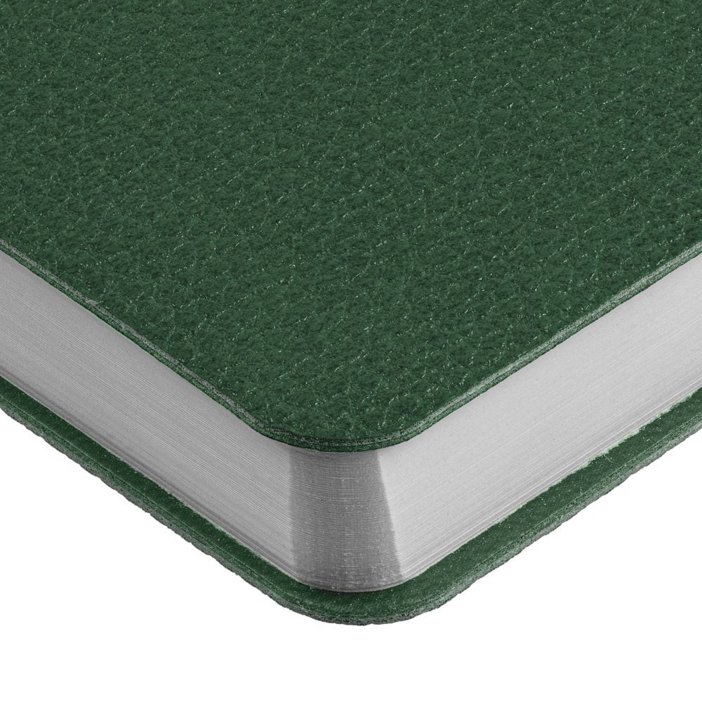 Ежедневник с гибкой обложкой, выполнен из материала La Fite, зеленый, дополнен ляссе в цвет обложки с металлическим шильдом.Блок 985, без календарной сетки и информационного блока: