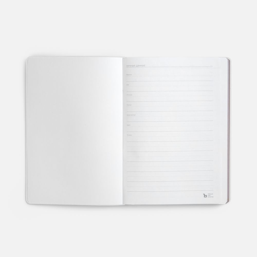 Ежедневник с гибкой обложкой, выполнен из материала Nebraska, белый BB (внутри и снаружи), дополнен ляссе белого цвета.