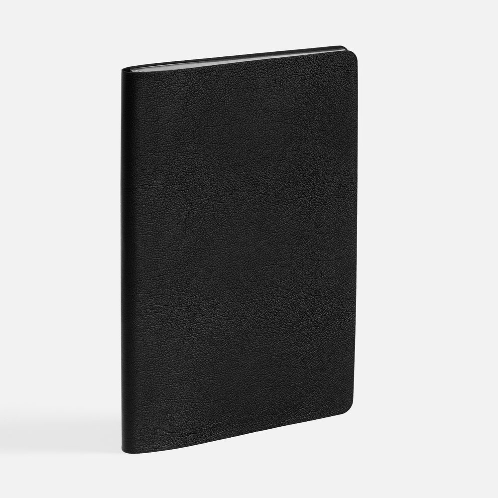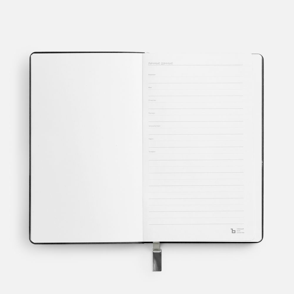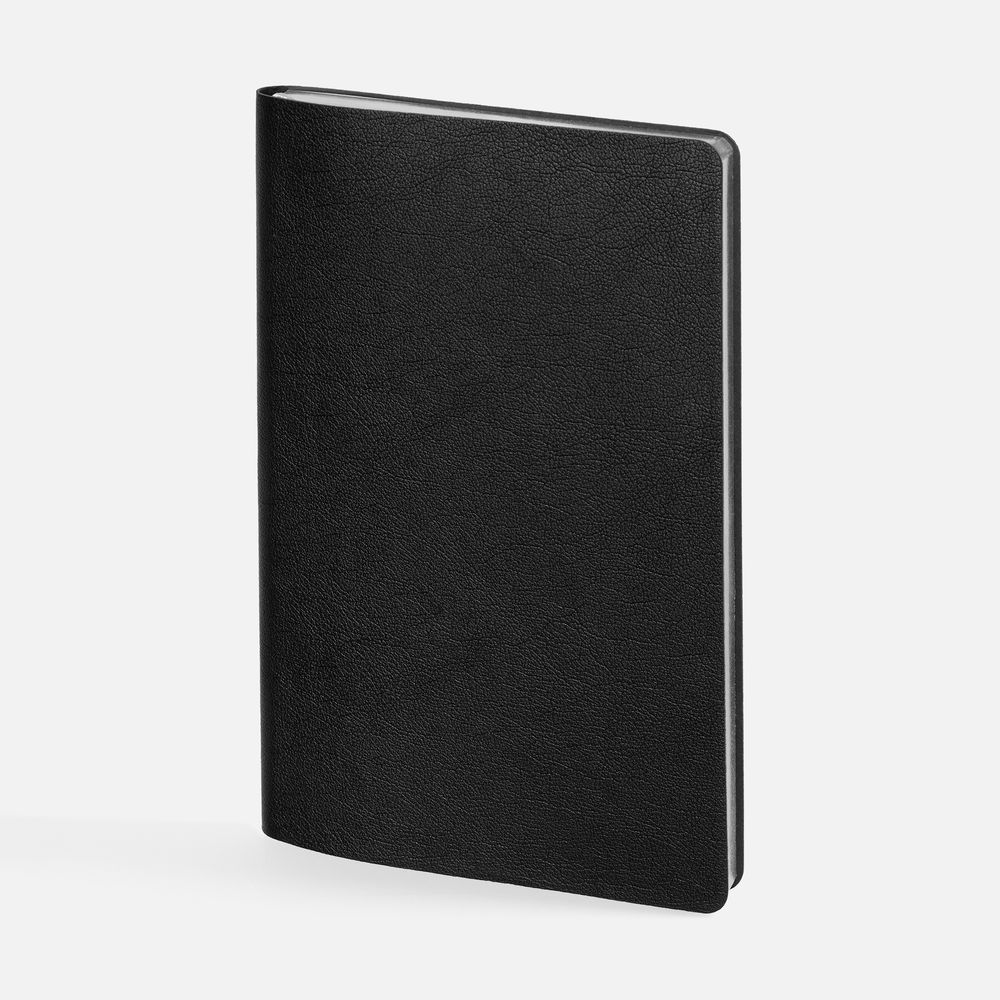 Ежедневник с гибкой обложкой, выполнен из материала Petrus, черный АА, дополнен серым ляссе с металлическим шильдиком.