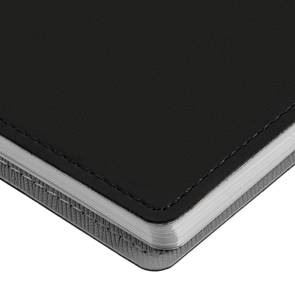 Ежедневник с гибкой обложкой, выполнен из материалов Soft Touch, черный АА и Nice touch,серый СС.